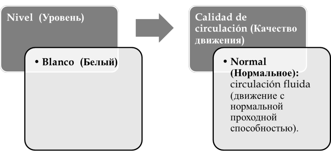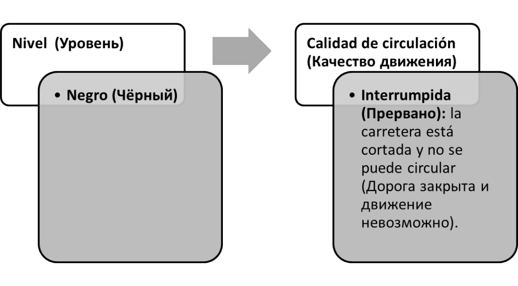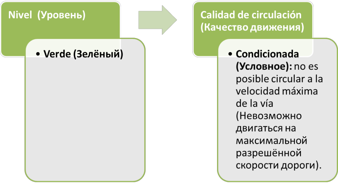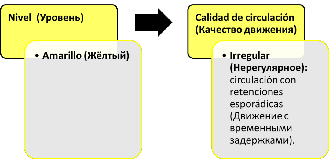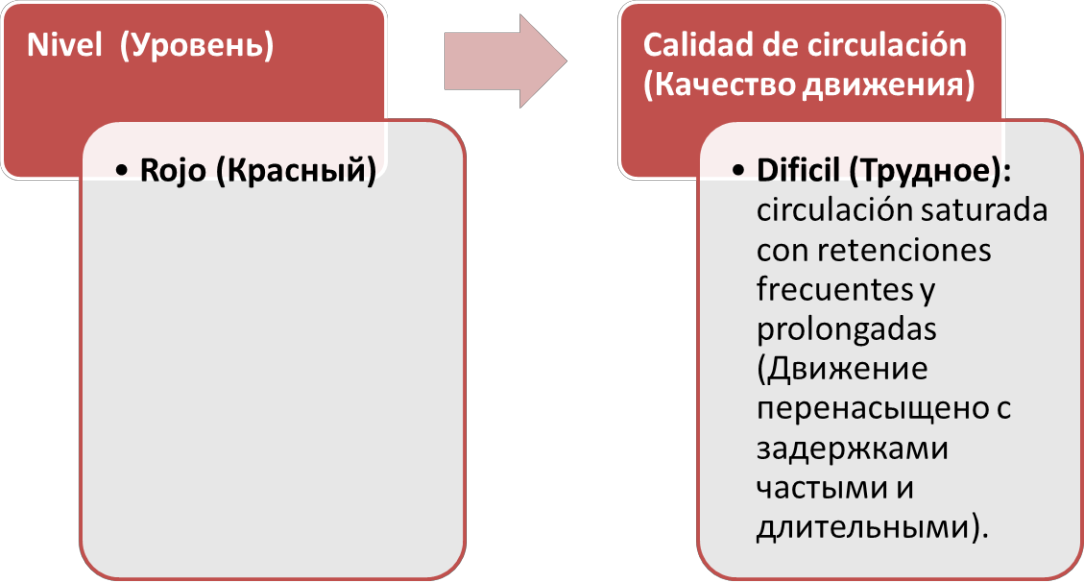 Código de colores en función de los niveles de la calidad de la circulación (Цветовой код, в зависимости от уровня качества дорожного движения)
