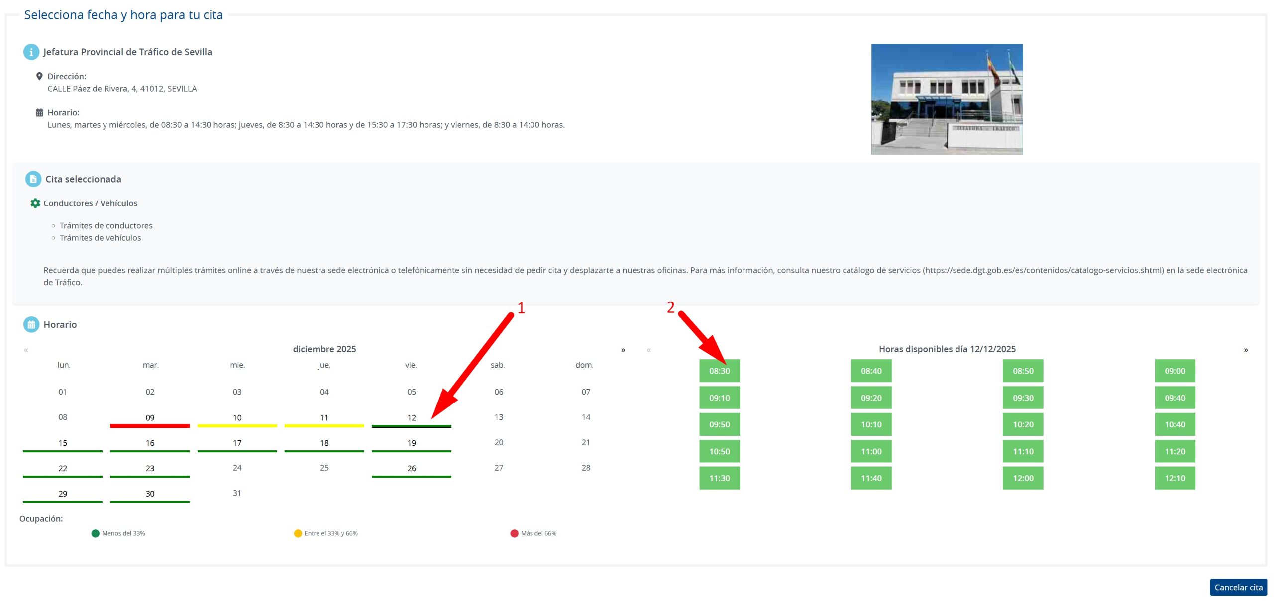 Далее, вам покажут на выбор свободные даты для приема. Соответственно вы должны выбрать желаемую 1. дату и 2. время для записи на прием.